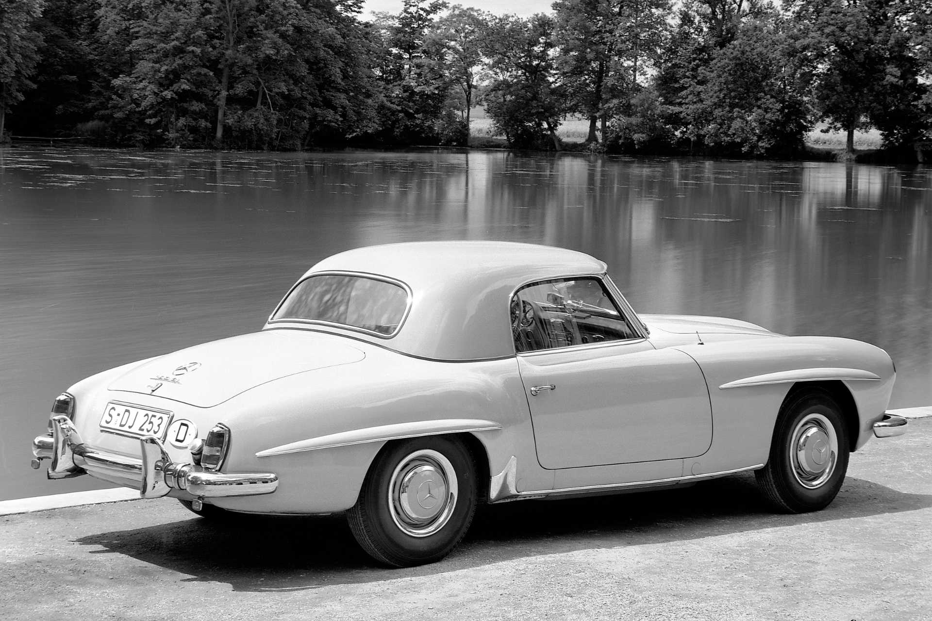 La 190 SL è bella sempre. Il tetto della seconda serie seguiva una foggia più elaborata, tipica di certe auto americane. Evidentemente il mercato aveva richiesto questa modifica.