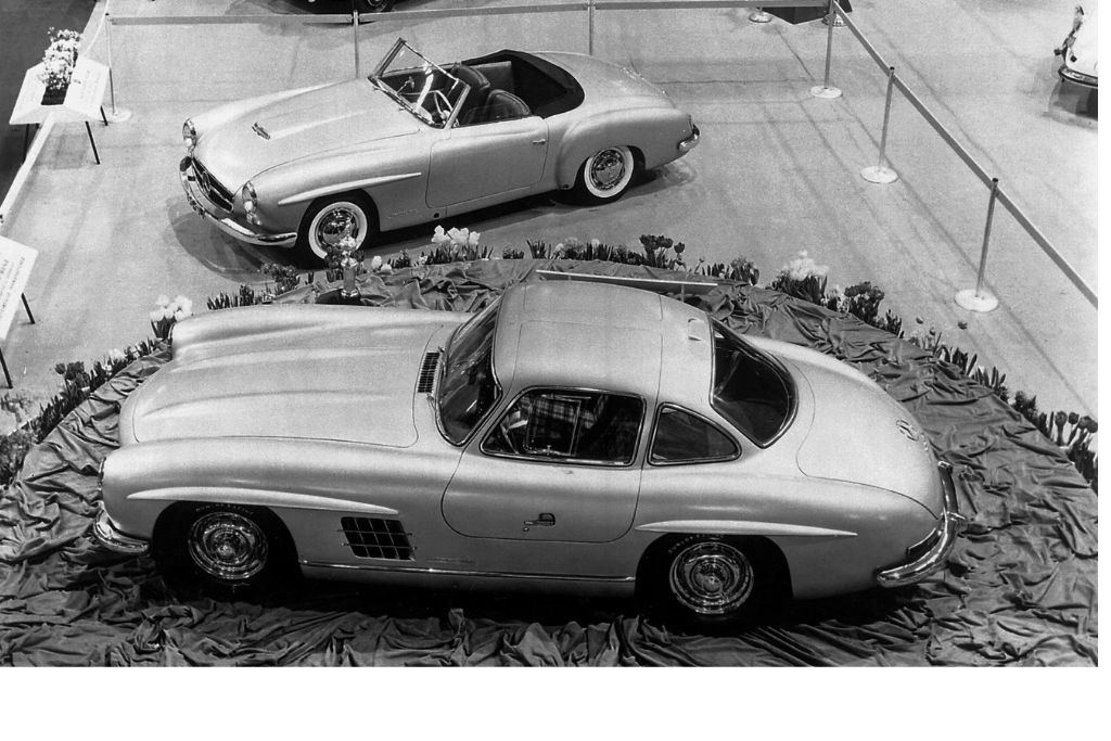 14 Febbraio 1954, International Motor Sport di New York, viene presentata la 300SL. In secondo piano ecco il prototipo della 190SL. L’anno successivo la nuova Roadster sarà pronta per il lancio.