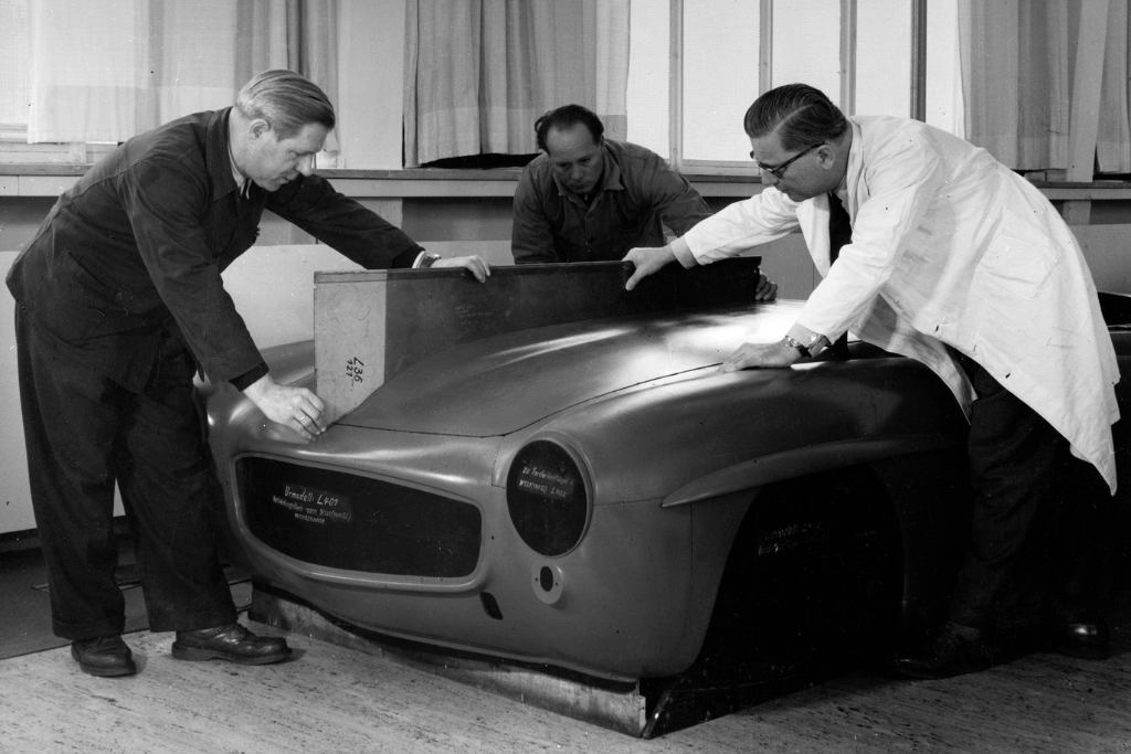 All’inizio del 1954 sbarcarono al Motor Sport di New York due prototipi della nuova Mercedes 190 SL, definita una turismo a due posti; uno di essi proseguì in aereo per Los Angeles. Uno dei due prototipi era in versione “barchetta” con una presa d’aria dinamica sul cofano, un singolo piccolo parabrezza in plexiglas per il guidatore, portiere a profilo ribassato e senza cristalli.